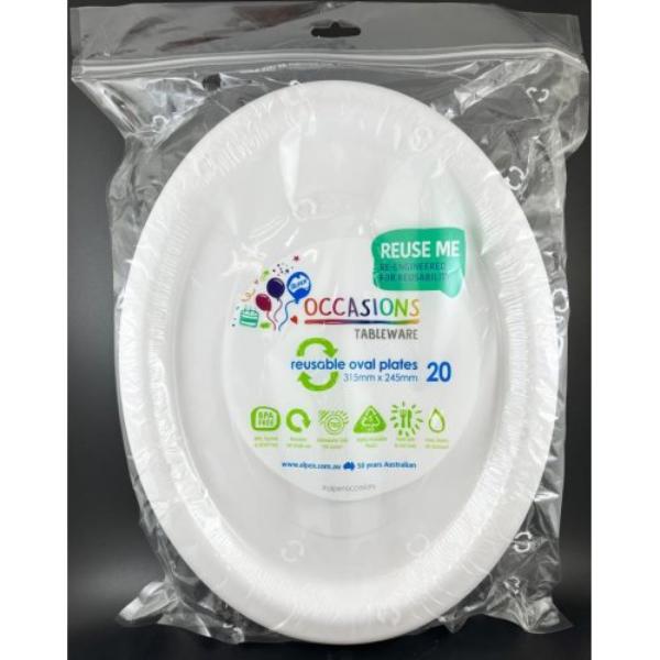 20 Pack White Reusable Oval Plates - 31.5cm x 24.5cm