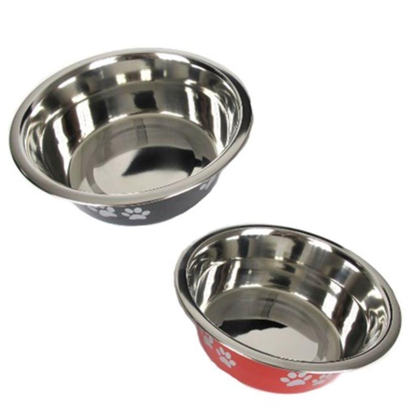 Only 3 left!Stainless Steel Pet Bowl with Coloured Rim - Medium - 22cm