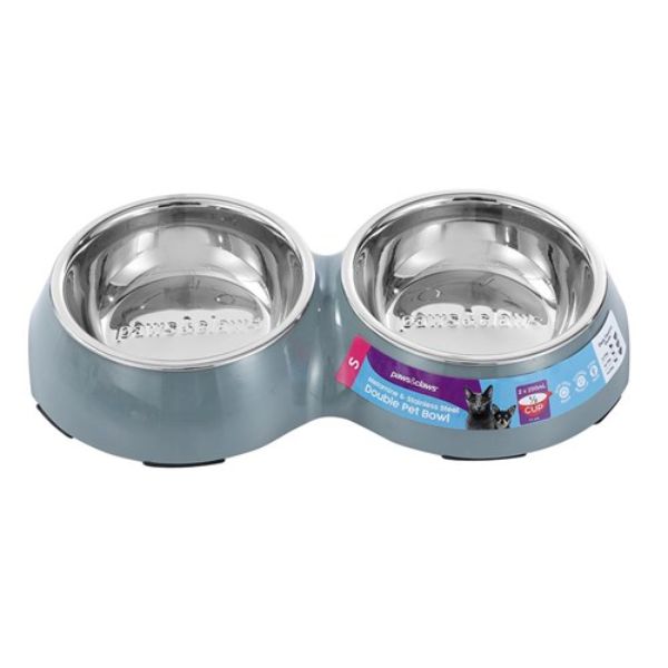 Only 5 left!Stainless Steel Grey Non Slip Melamine Double Pet Bowl - 200ml