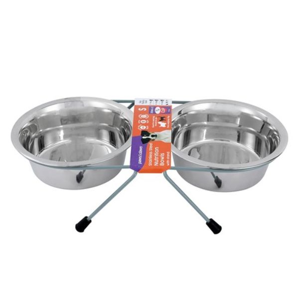 Only 1 left!Stainless Steel Double pet Bowl With Stand - 350ml