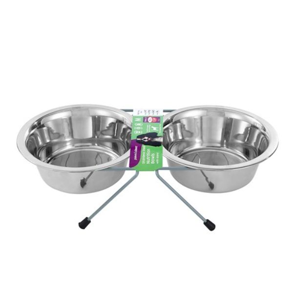 Only 2 left!Stainless Steel Double pet Bowl With Stand - 750ml