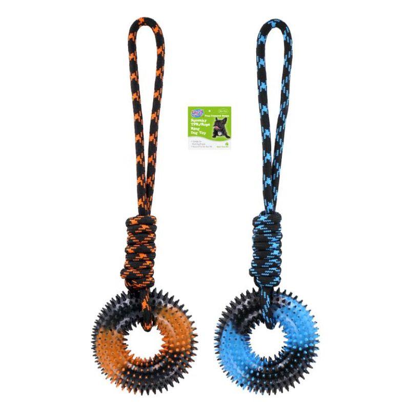 Only 1 left!Dual Coloured Series TPR/Rope Ring Dog Toy - 48cm x 12cm x 4cm