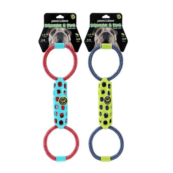 15 in stockSqueak & Tug Double Tugger Tpr + Rope - 39cm x 12cm x 5cm