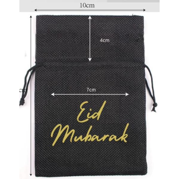 12 in stock6 Pack Black Gold Print Eid Mubarak Hessian Bag - 10cm x 14cm