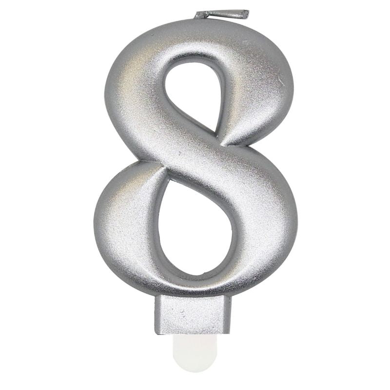 11 in stockMetallic Silver Numerical Birthday Candle 8 - 8cm