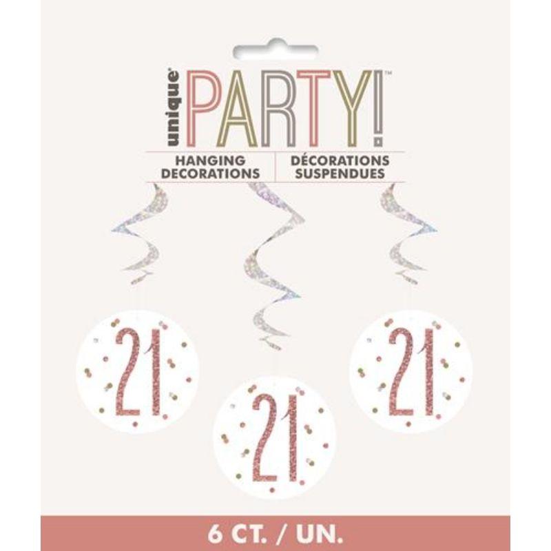 Only 1 left!6 Pack 21 Rose Gold Prismatic Hanging Swirl Decorations - 81cm