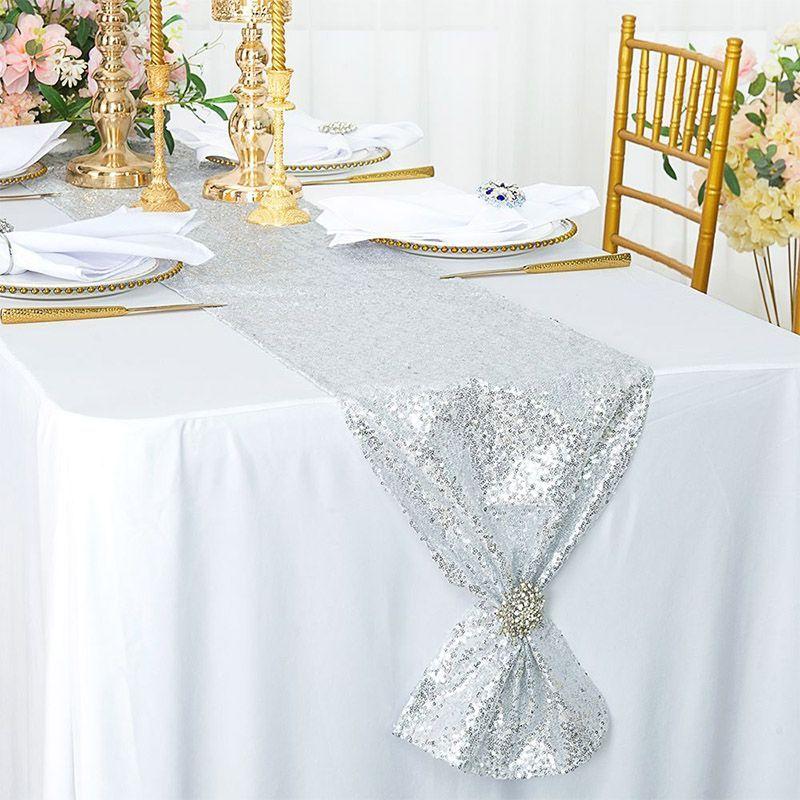 23 in stockSilver Sequin Table Runner - 30cm x 180cm