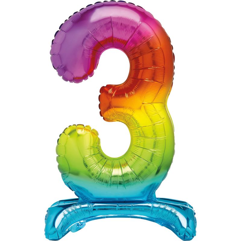 Only 3 left!Rainbow "3" Giant Standing Air Filled Numeral Foil Balloon - 76.2cm