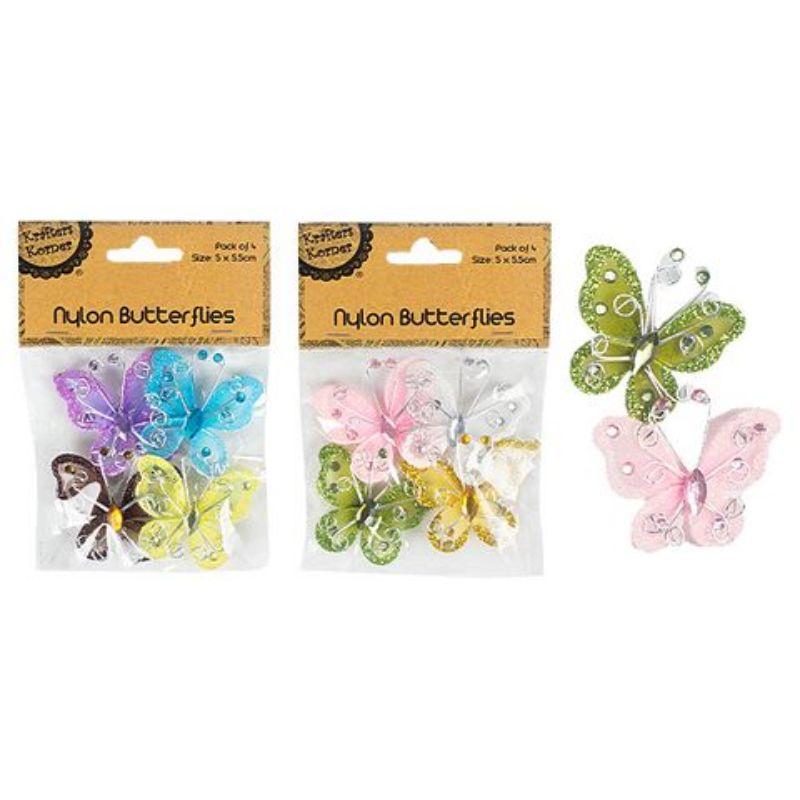 4 Pack Soft Nylon Butterflies - 5cm x 5.5cm
