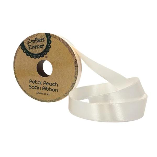 18 in stockPetal Peach Satin Ribbon - 1.5cm x 400cm