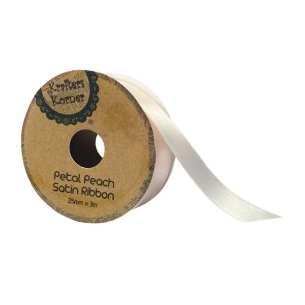 12 in stockPetal Peach Satin Ribbon - 2.5cm x 300cm