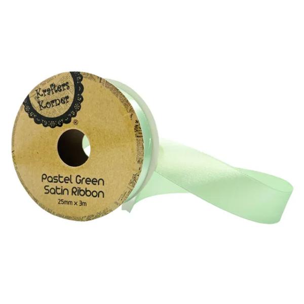 12 in stockPastel Green Satin Ribbon - 2.5cm x 300cm