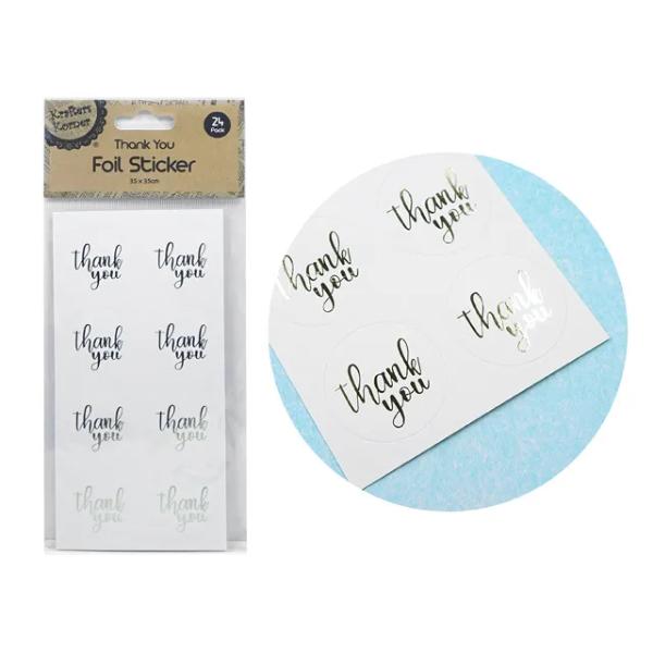 24 Pack Gold Thank You Foil Stickers - 3.5cm x 3.5cm