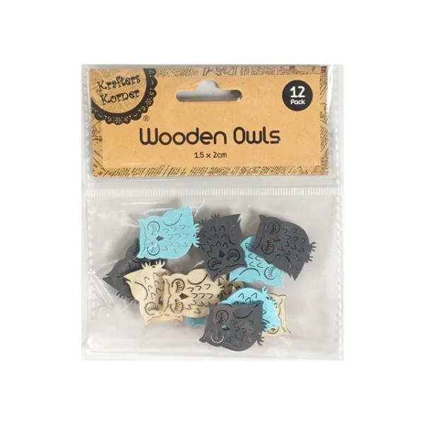 7 in stock12 Pack Mini Wooden Owls - 1.5cm x 2cm