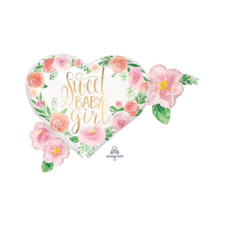 9 in stockSuperShape Floral Sweet Baby Girl Heart Foil Balloon - 68cm x 50cm