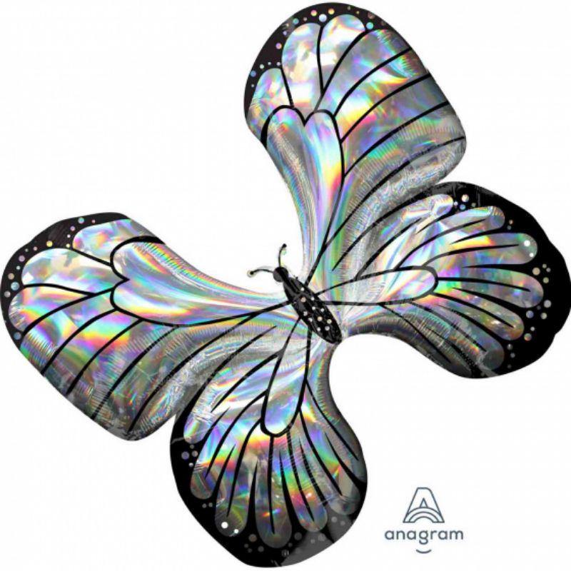 6 in stockSuperShape Holographic Iridescent Butterfly Foil Balloon - 76cm x 66cm