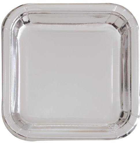 Only 2 left!8 Pack Silver Foil Square Paper Plates - 18cm