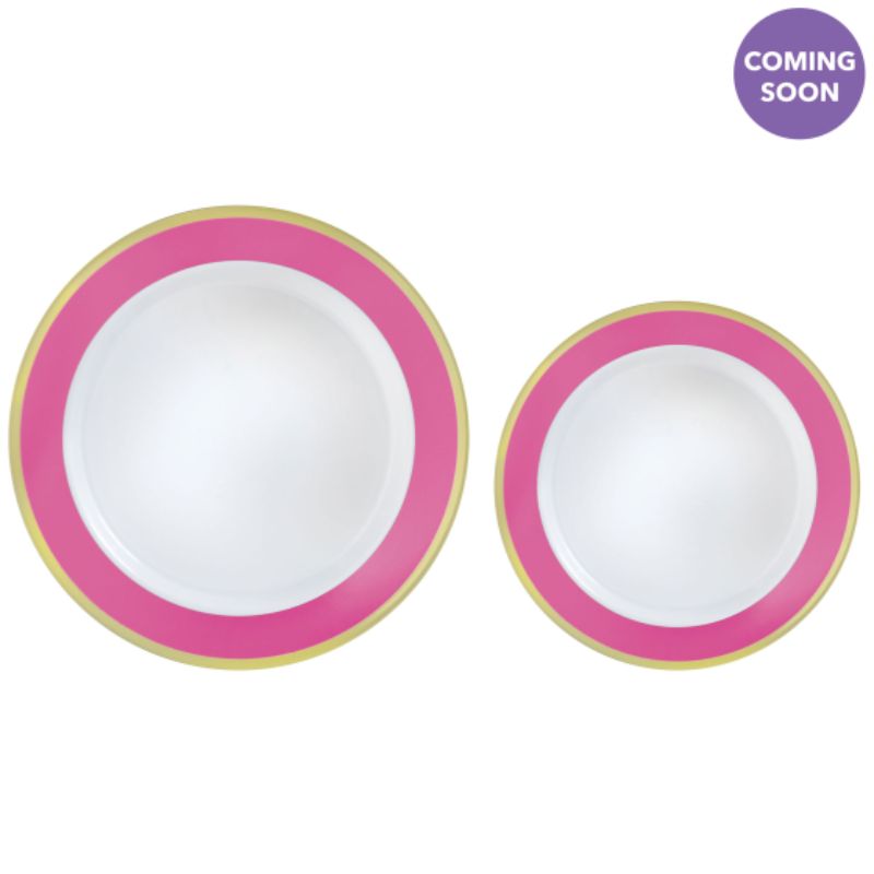 Only 1 left!20 Pack Hot Stamped with Bright Pink Border Premium Plastic Plates