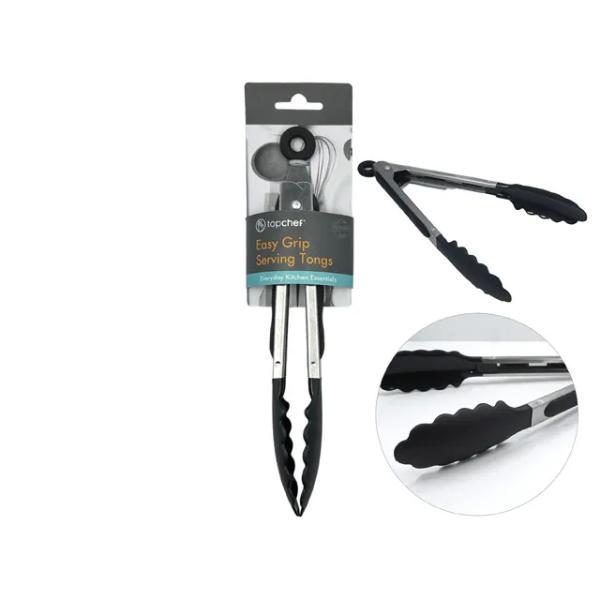 Only 5 left!Stainless Steel Black Silicone Serving Tongs - 23cm x 3.5cm