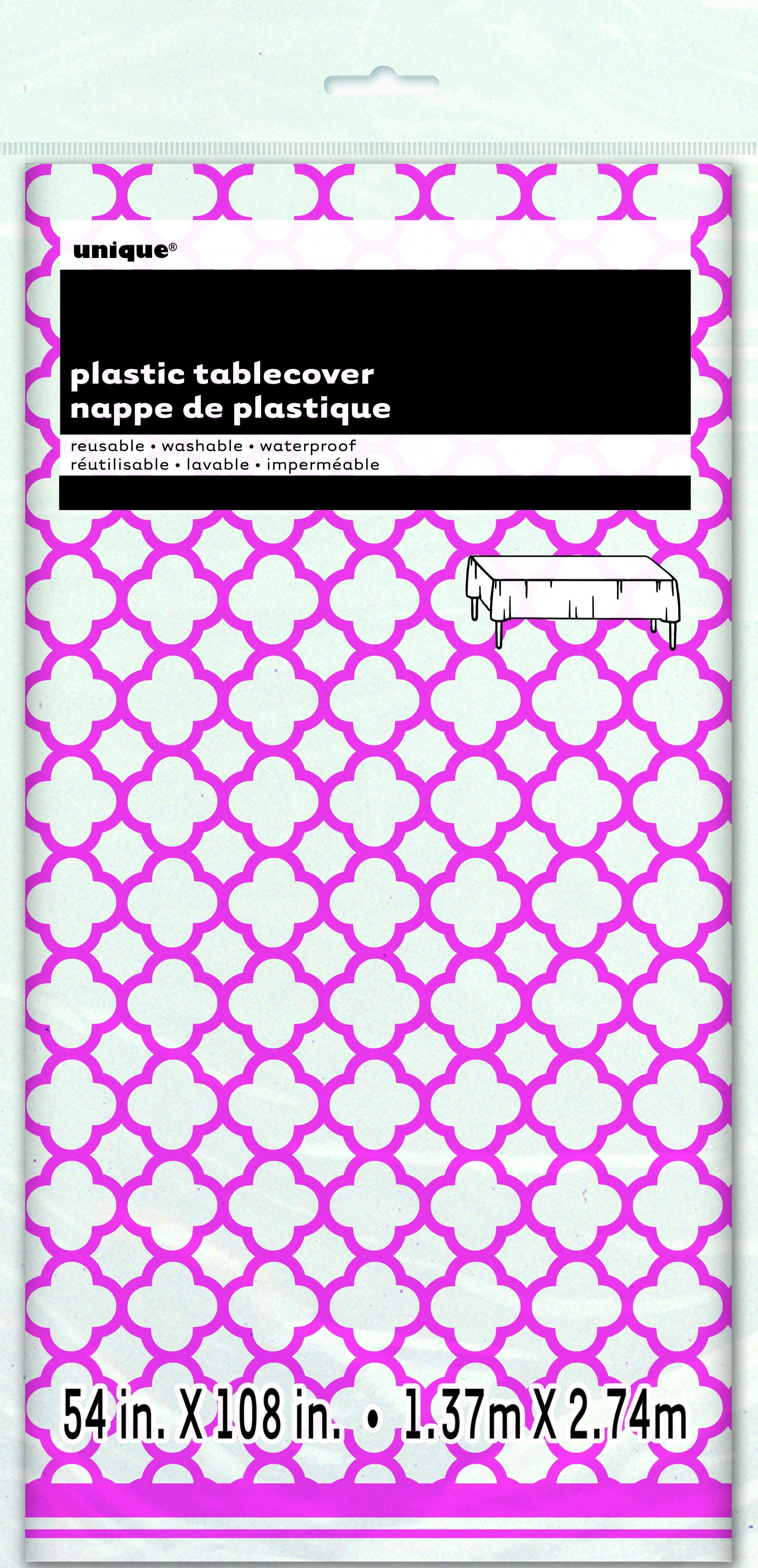 Only 3 left!Hot Pink Quatrefoil Plastic Rectangle Tablecover - 137cm x 274cm