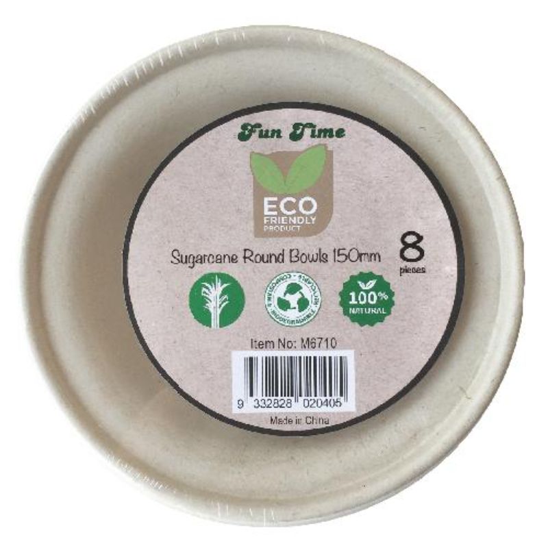 Only 2 left!8 Pack Sugarcane Eco Friendly Compostable & Biodegradable Bowls - 15cm- Regular price