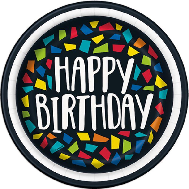 Only 1 left!8 Pack Colourful Mosaic Birthday Paper Plates - 23cm- Regular price