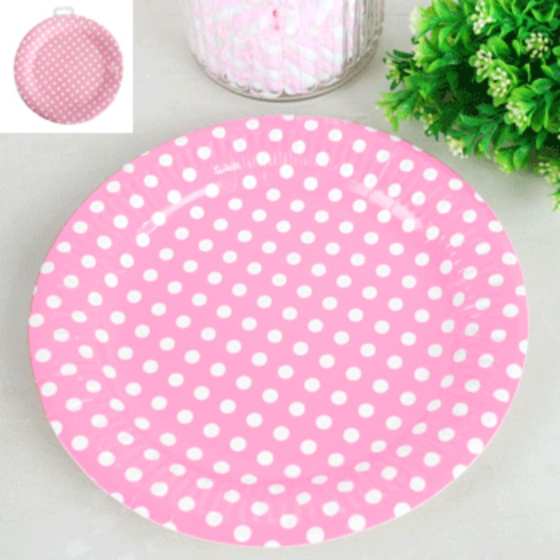 Only 1 left!12 Pack Pink Dot Paper Plates - 23cm- Regular price