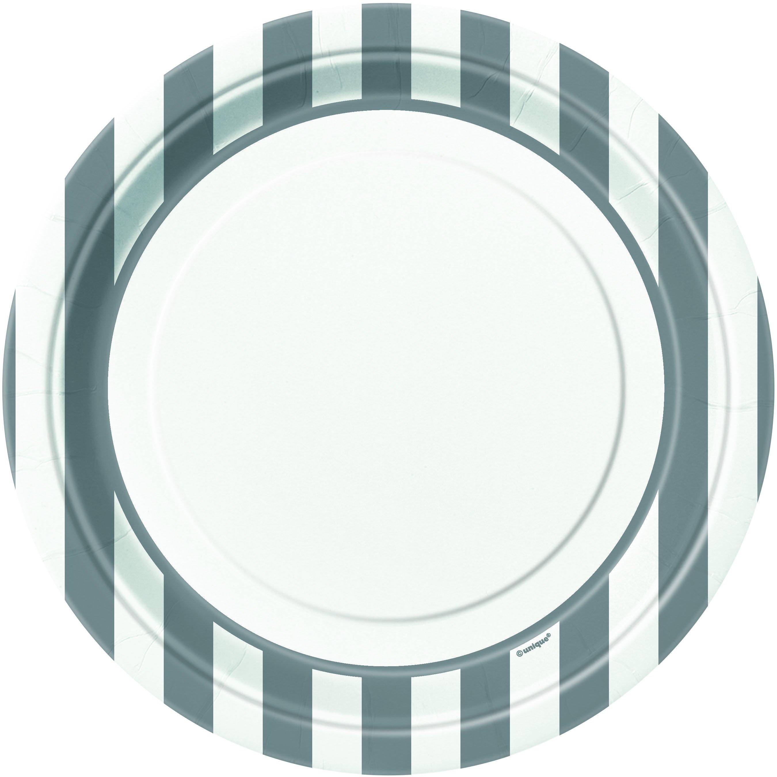 Only 2 left!8 Pack Silver Stripes Paper Plates - 23cm