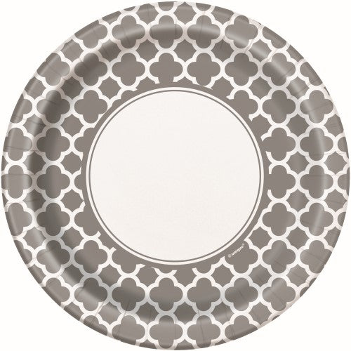 Only 4 left!8 Pack Silver Quatrefoil Plates - 23cm