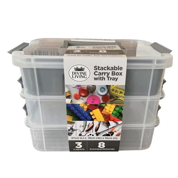 Only 1 left!3 Lay Stack Carry Box With Tray - 18cm x 27.5cm x 19.5cm