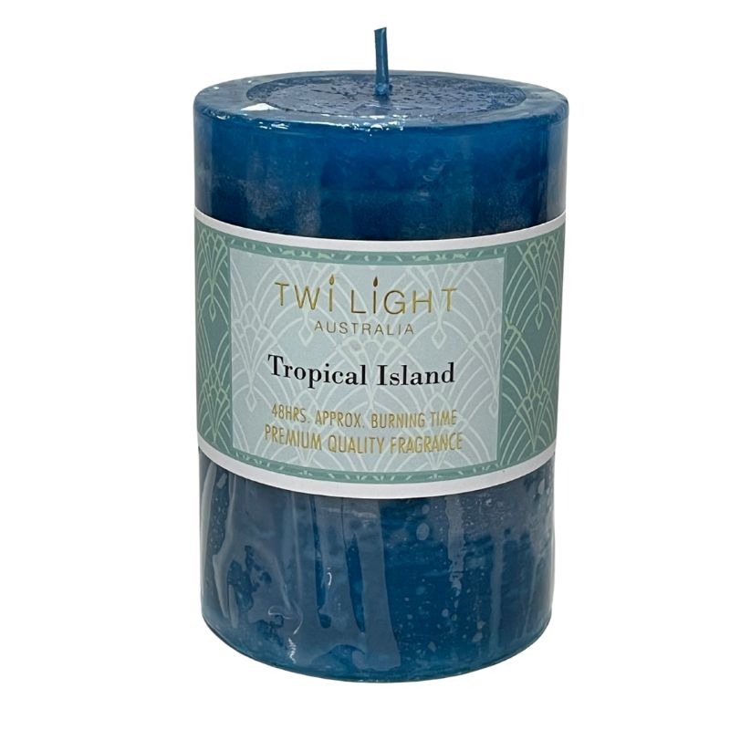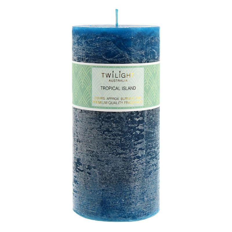Only 3 left!Twilight Frost Pillar Candle Tropical Island - 8.8cm x 18.5cm