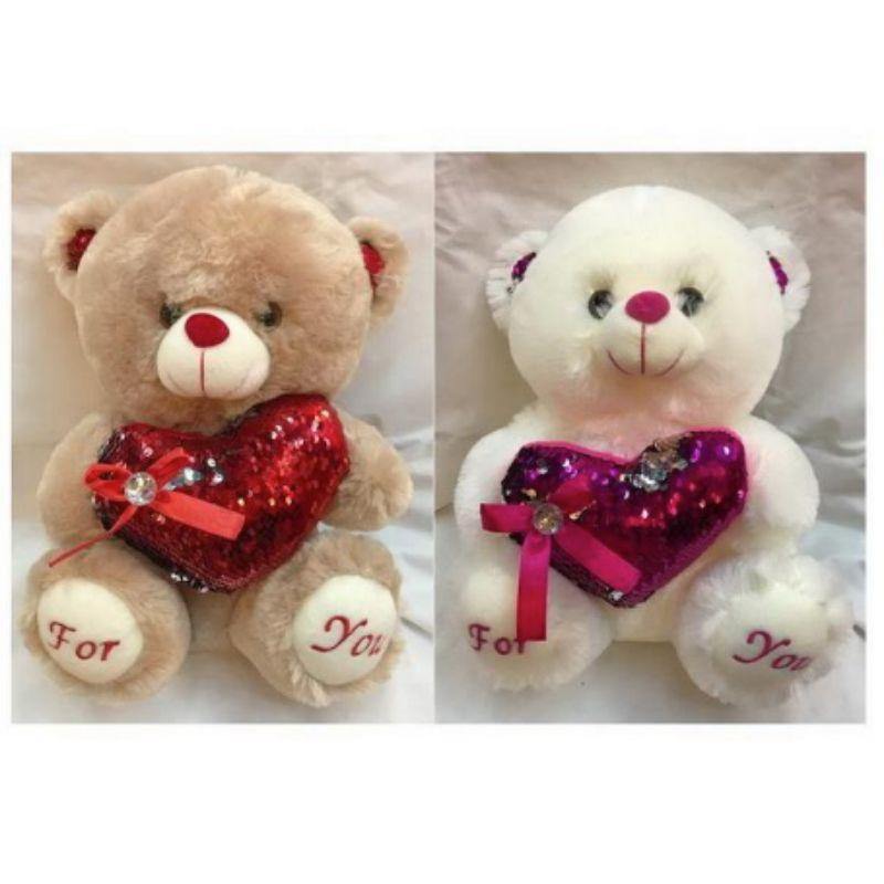 11 in stockPlush Bear With Sequin Heart - 40cm