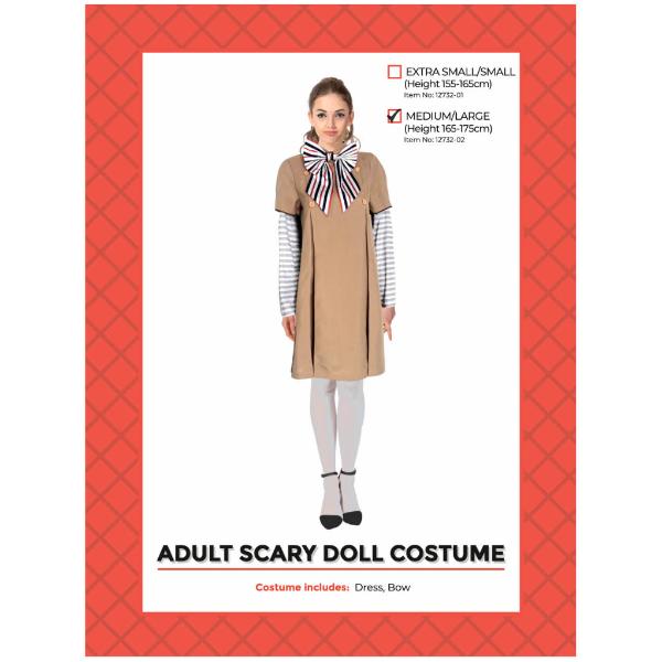 Only 1 left!Adult Scary Doll Costume - Medium - Large