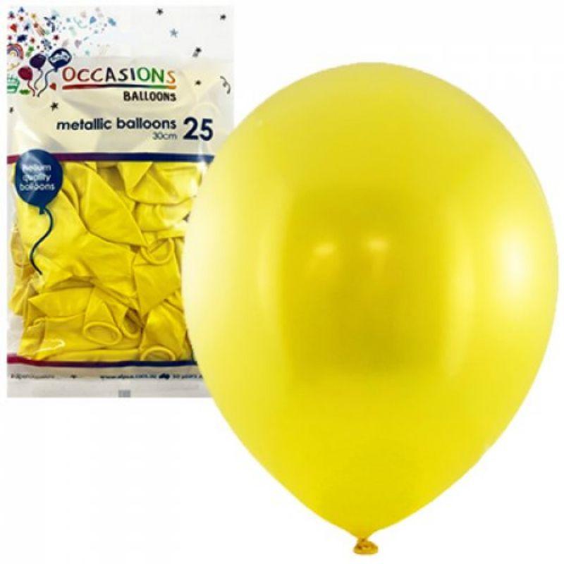 12 in stock25 Pack Metallic Yellow Latex Balloons - 30cm