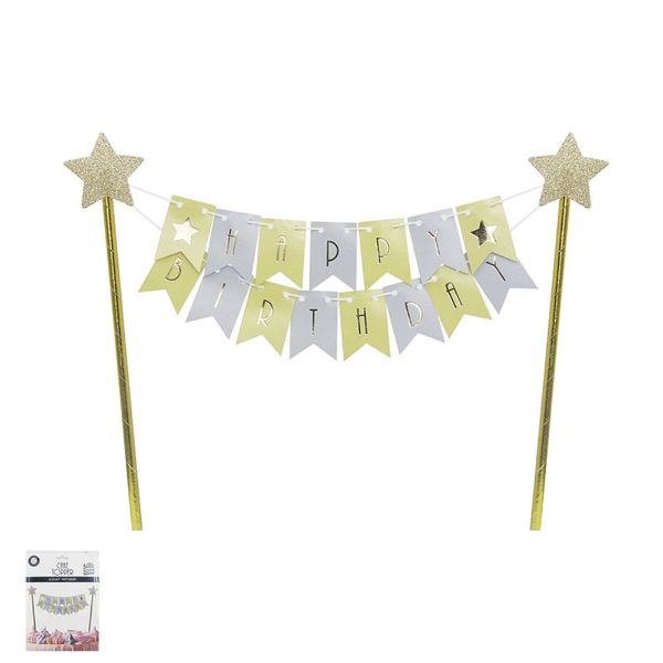 6 in stockYellow Bunting Happy Birthday Cake Topper