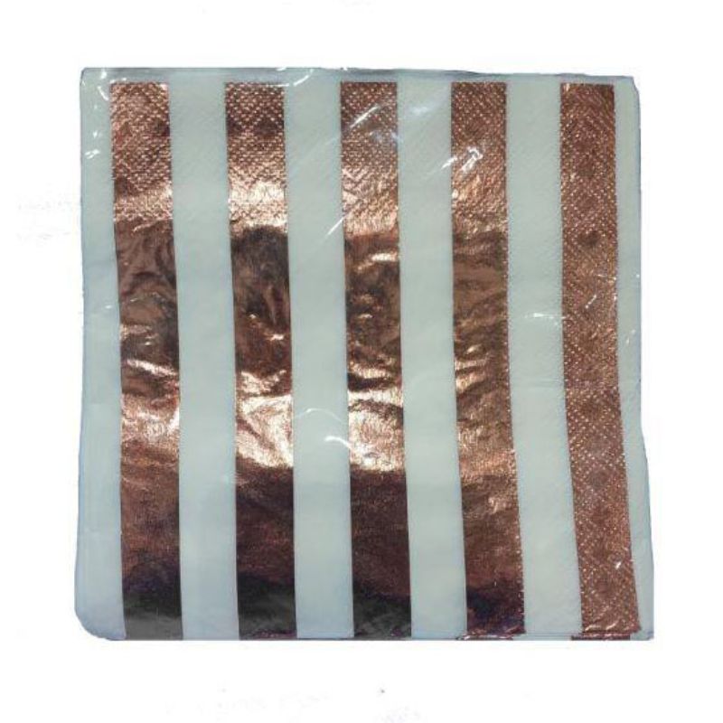 20 Pack Rose Gold Stripe Beverage Napkins - 13cm- Regular price