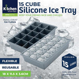 - 15 Cube Grey Silicone Ice Mould Maker Tray - 18cm x 11.5cm x 3.6cm