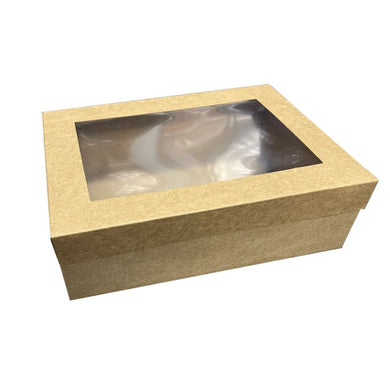 Brown Kraft Foldable Cake Box With Clear Window Lid - 28.2cm x 28.2cm x 10cm