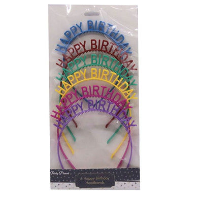 Only 1 left!6 Pack Multicolour Plastic Happy Birthday Headbands